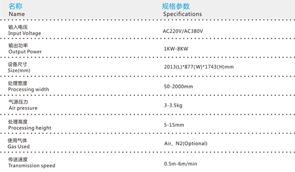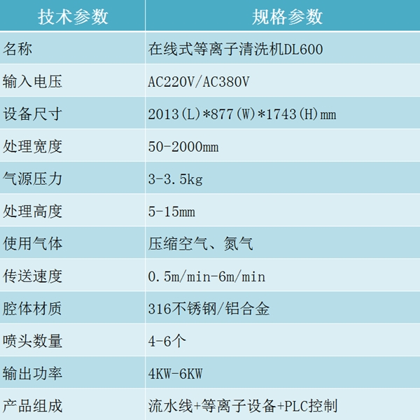 DL600在線式等離子清洗機 寬幅等離子表面處理 技術參數: